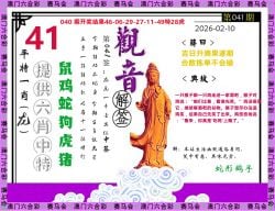 041期开奖时间2026年02月10 星期二)晚9:30开(农历十二月廿三 兔冲鸡)